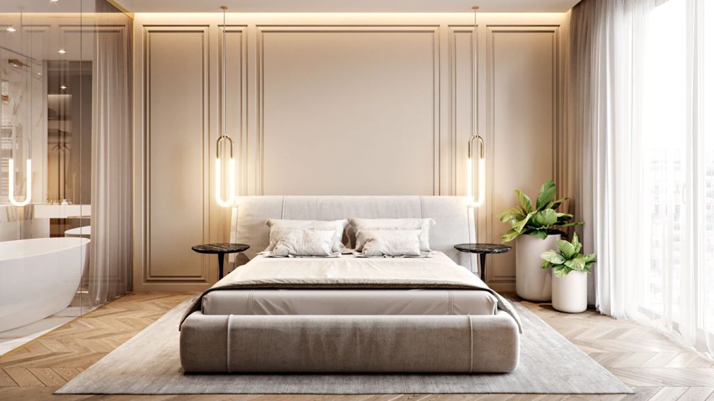 Jika Anda ingin mengedepankan sisi modern yang lebih dominan namun terlihat tetap klasik pada beberapa elemennya, desain kamar modern klasik satu ini sangat cocok untuk Anda implementasikan. Berikut hal-hal yang perlu diperhatikan:
