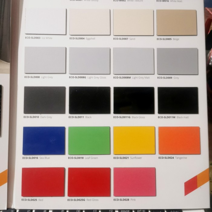 - Solid Color – HPL tipe ini menyediakan berbagai macam warna yang komplit dengan 2 macam finishing yaitu glossy dan doff.